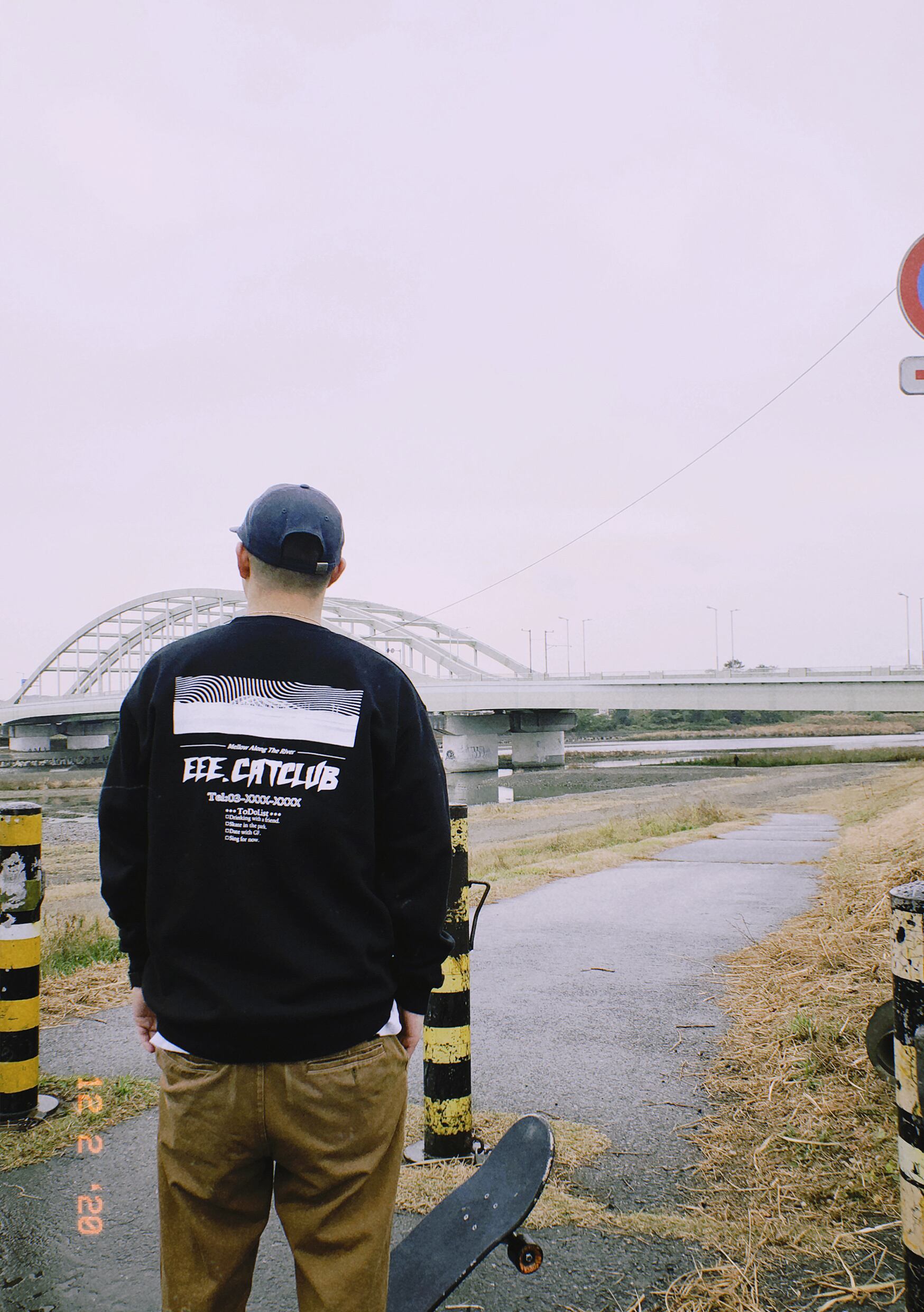 フロントには“Eee.catclub”、バックには彼の地元である狛江の川沿いの景色をプリントしました。